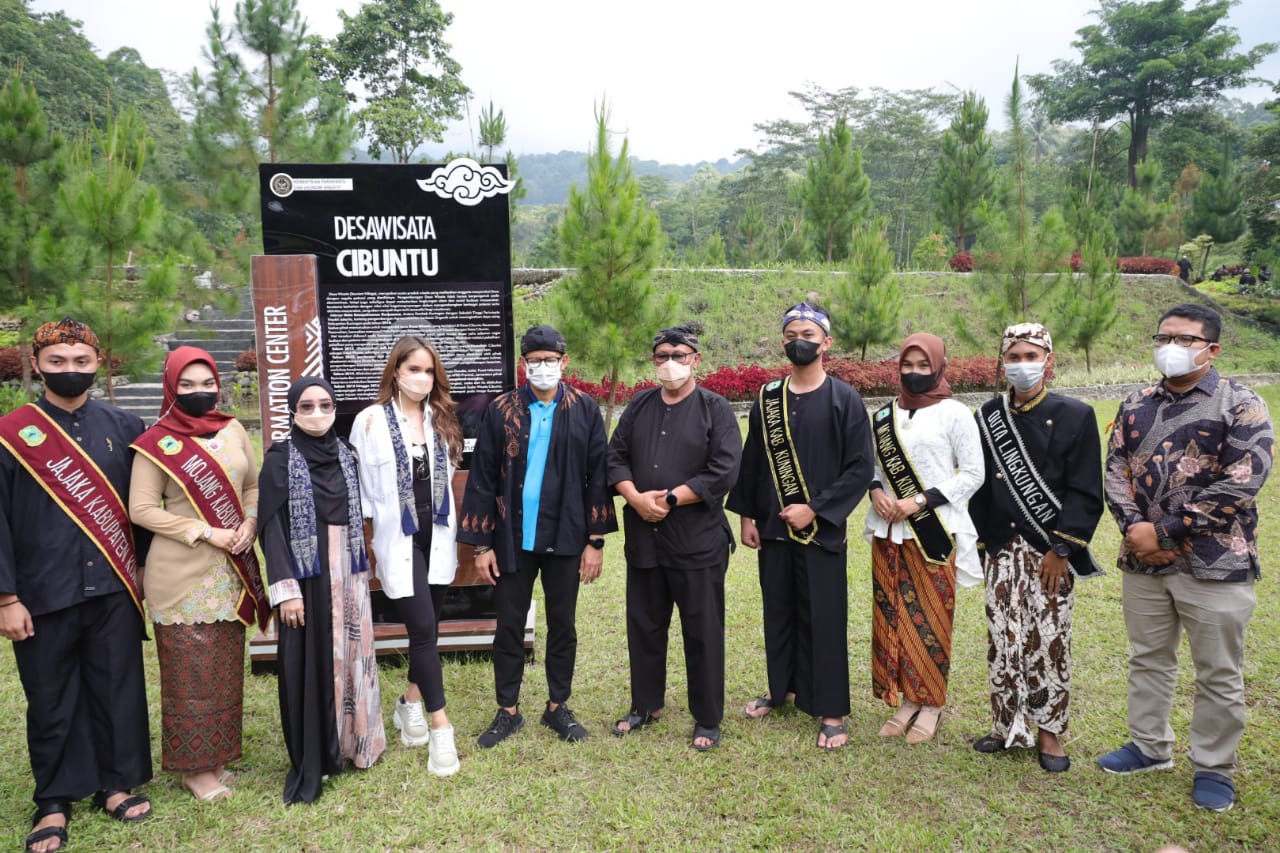 Bupati Kuningan, H. Acep Purnama, SH., MH. menerima Kunjungan Kerja Menteri Pariwisata dan Ekonomi Kreatif (Menparekraf) Sandiaga Salahuddin Uno yang di dampingi artis cantik Cinta Laura dalam rangka terkait Sosialisasi Anugerah Desa Wisata Indonesia 2021 pada Senin (30/3/2021) bertempat di Desa Wisata Cibuntu, Kecamatan Pasawahan.