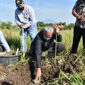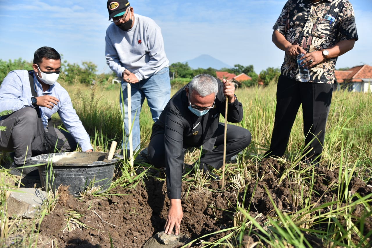 Bupati Kuningan, H. Acep Purnama, SH., MH. melakukan peletakan batu pertama pembangunan Tempat Pengolahan Sampah Reduce-Reuse-Recycle (TPS 3R) yang berada di Desa Wanasaraya, Kecamatan Kalimanggis, Kabupaten Kuningan, Kamis (8/7/2021).