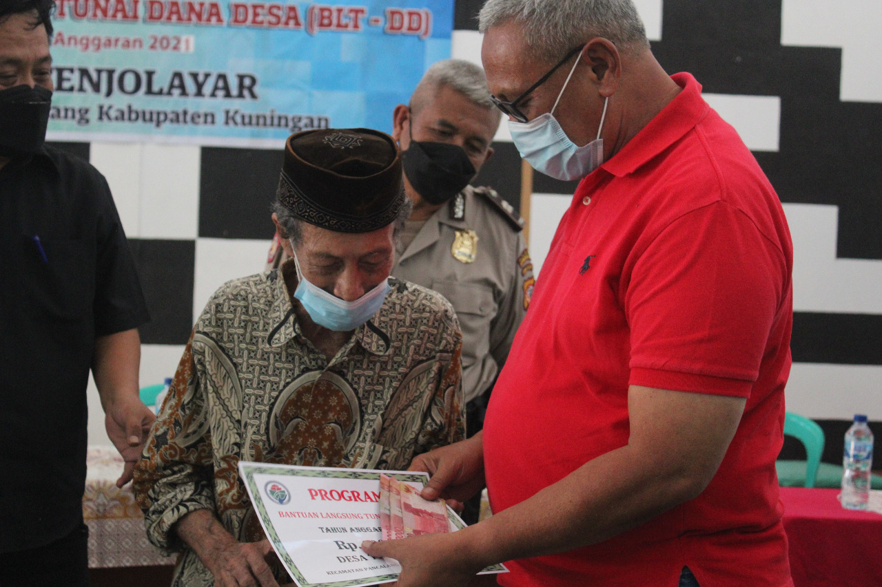 Penyaluran Bantuan Langsung Tunai (BLT DD) di Desa Tenjolayar Kecamatan Pancalang, di hadiri langsung oleh Bupati Kuningan, H. acep Purnama, SH., MH. di dampingi camat Pancalang, Deni Komara, S. IP, M. Si. , Jum'at (30/7/2021).